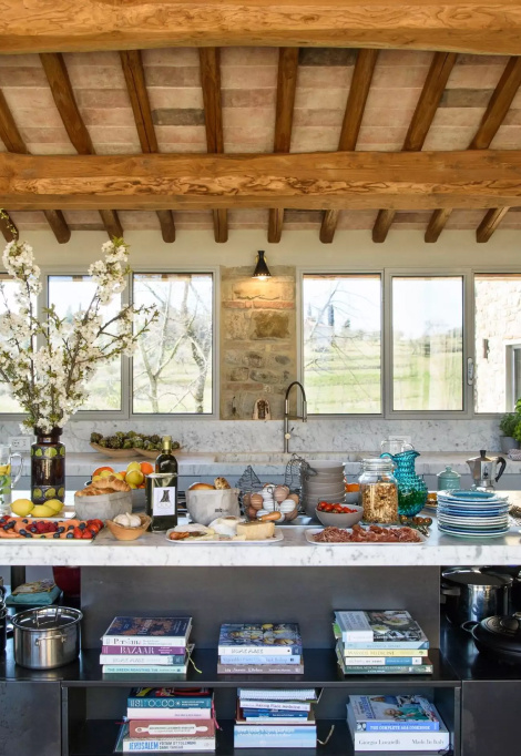 Villa Sangiovese is one of our favourite Tuscan country house rentals out of town. Tucked away, out of town, it boasts a heavenly, panoramic nature view and a spacious outdoor table perfect for gathering your tribe for a sunset aperitif.
